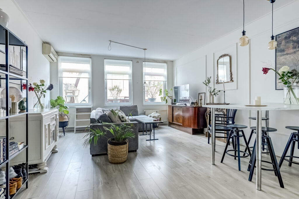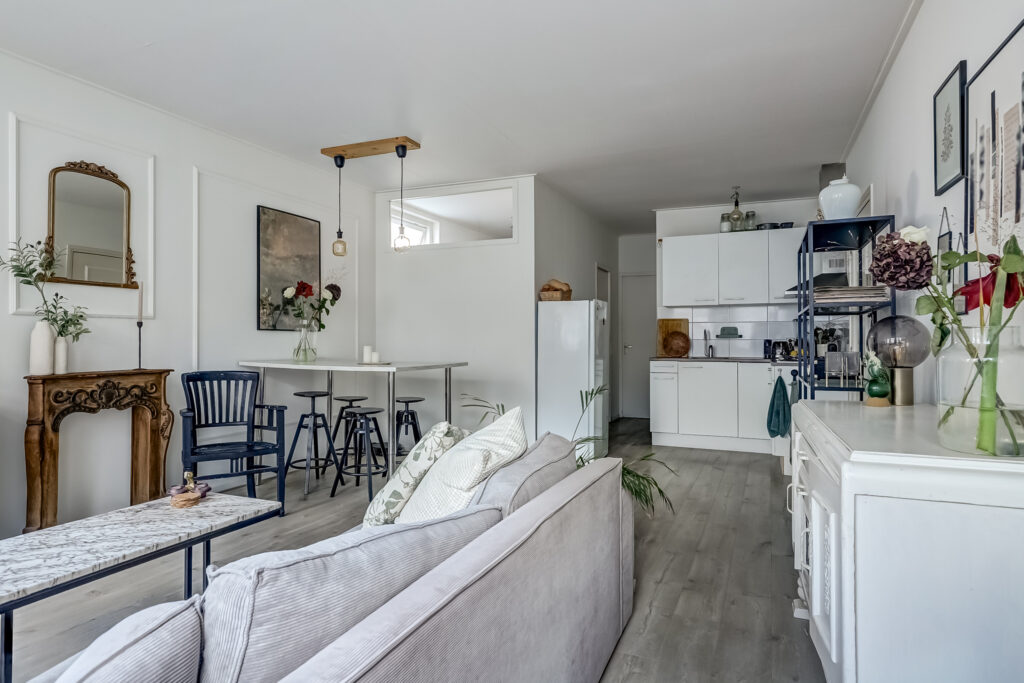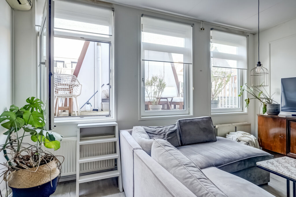 – Woonkamer met open keuken, een lichte en sfeervolle ruimte met toegang tot het dakterras van ca. 10 m², ideaal gelegen op het zuiden.