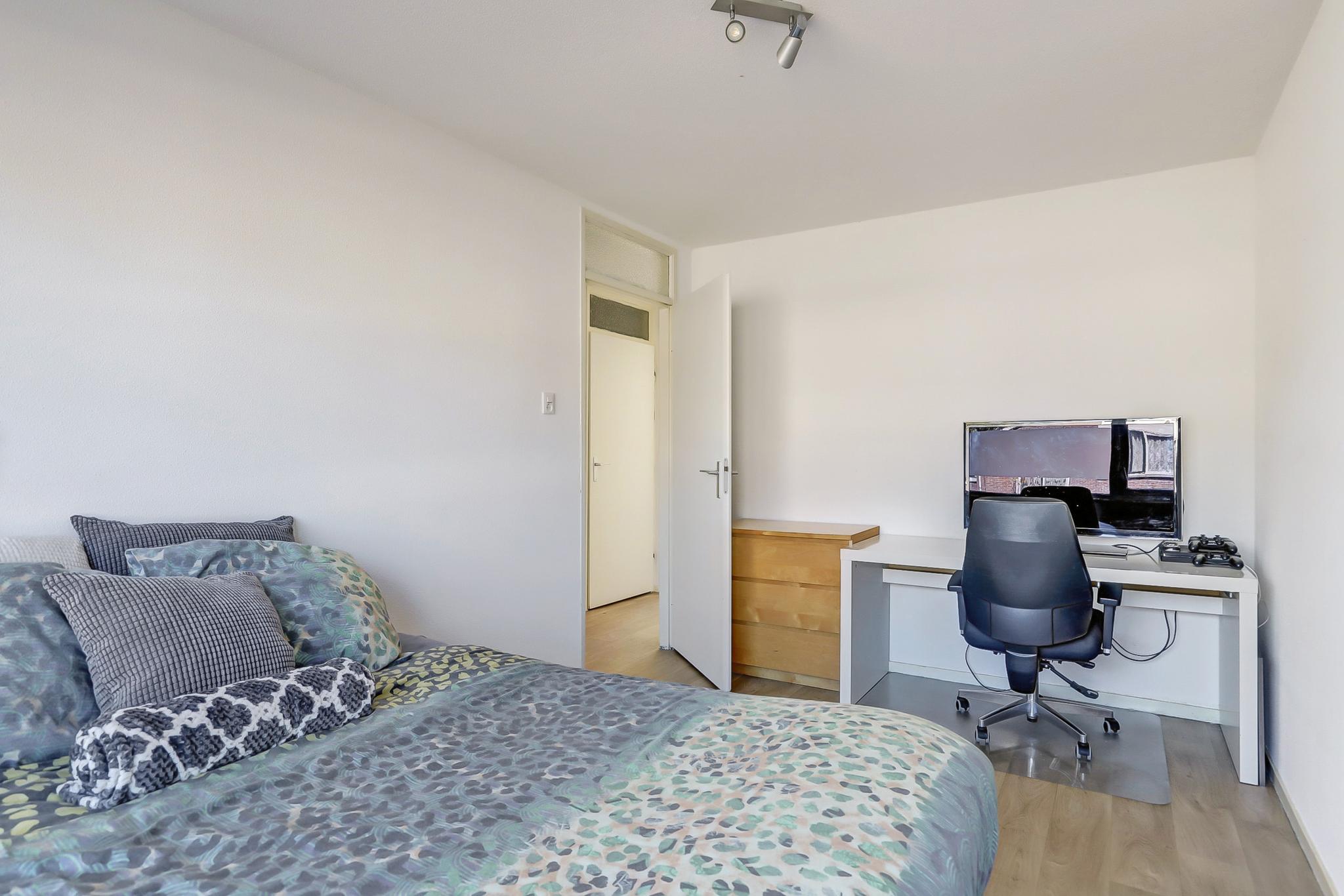 Hier tref je drie fijne, goed bemeten slaapkamers met veel natuurlijk licht. De badkamer is functioneel ingericht met douche, wastafel en toilet, en biedt volop mogelijkheden.
