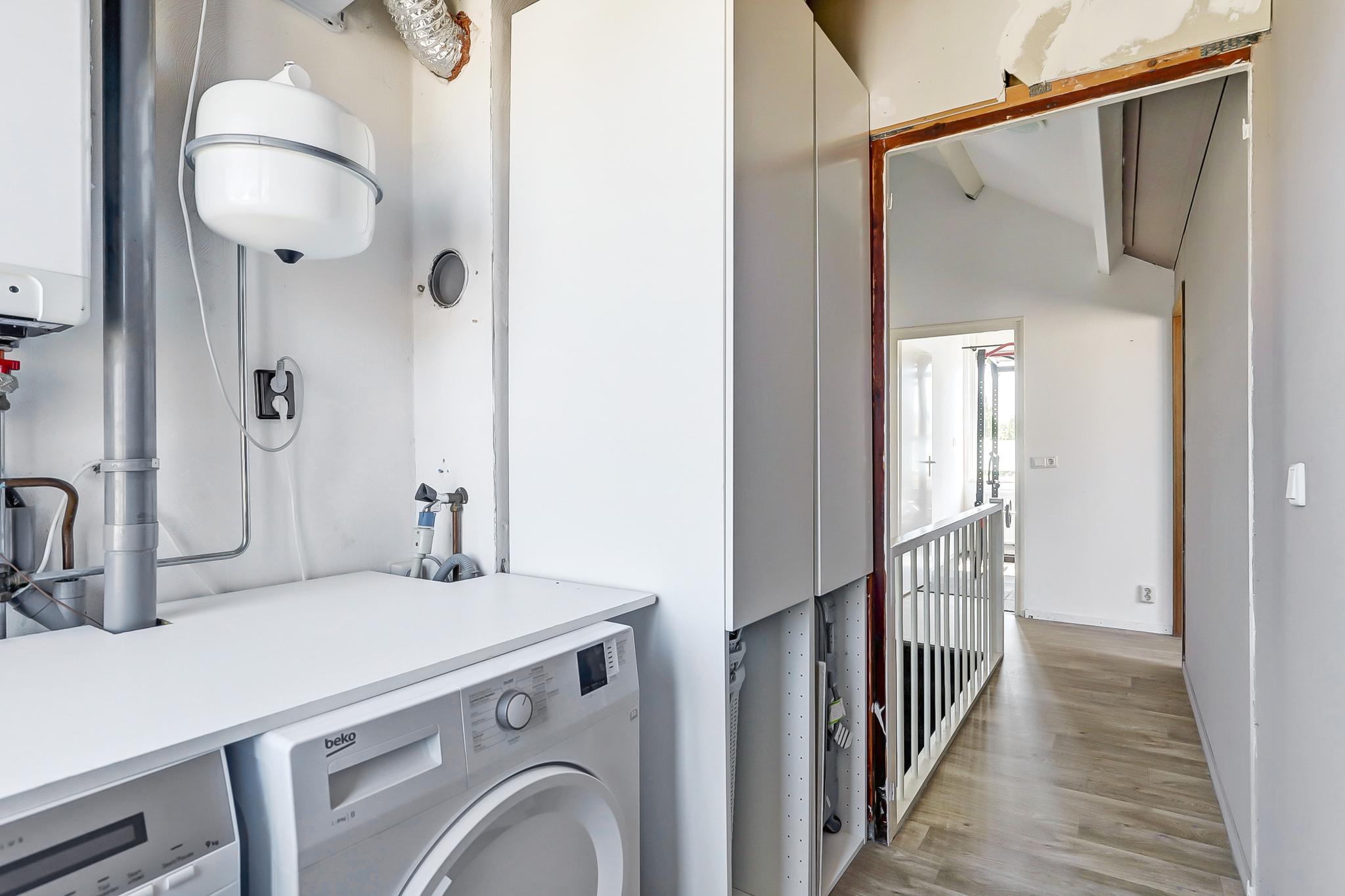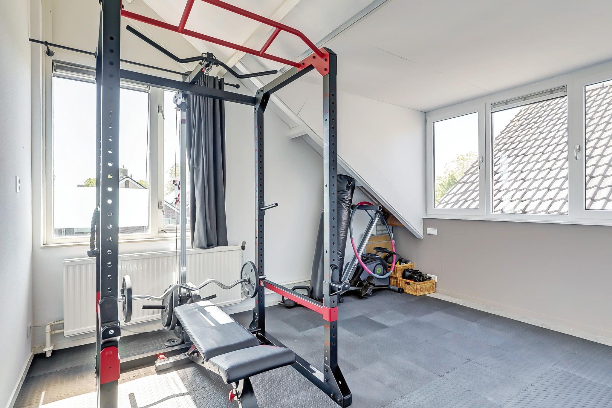 Dankzij de recent geplaatste dakkapel is deze verdieping verrassend licht en royaal. Hier zijn nog eens twee slaapkamers gerealiseerd, waarvan er nu één als sportkamer wordt gebruikt. Ook is er een aparte wasruimte aanwezig. Perfect voor logees, een creatieve studio of extra bergruimte!
